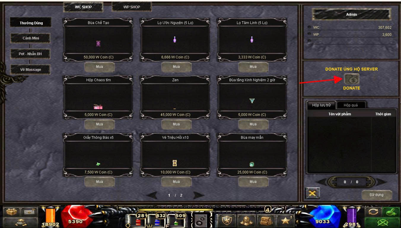 Tại giao diện Cash Shop
